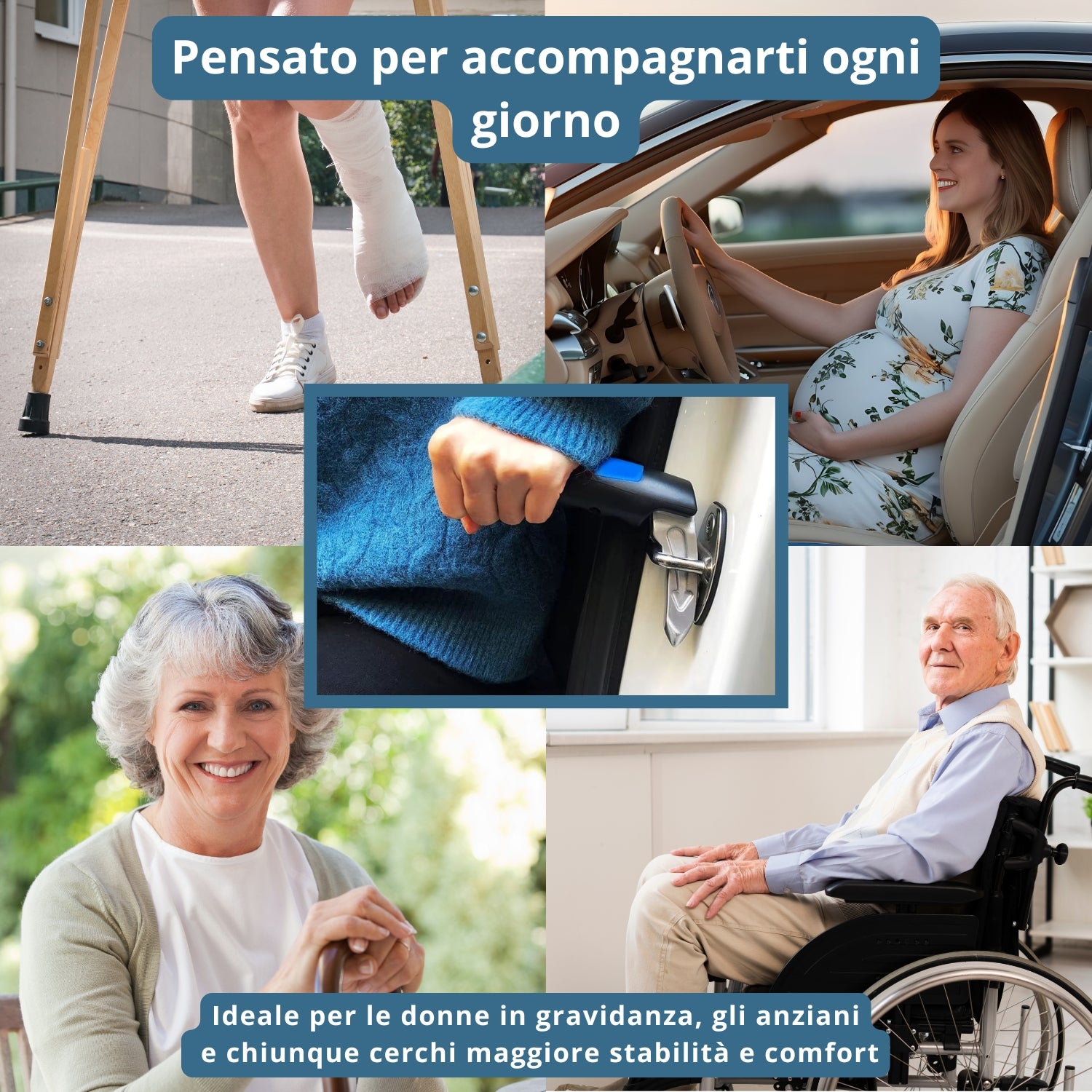 ExitHand™ è progettato per chiunque abbia bisogno di un supporto aggiuntivo per entrare o uscire dall’auto con maggiore facilità.